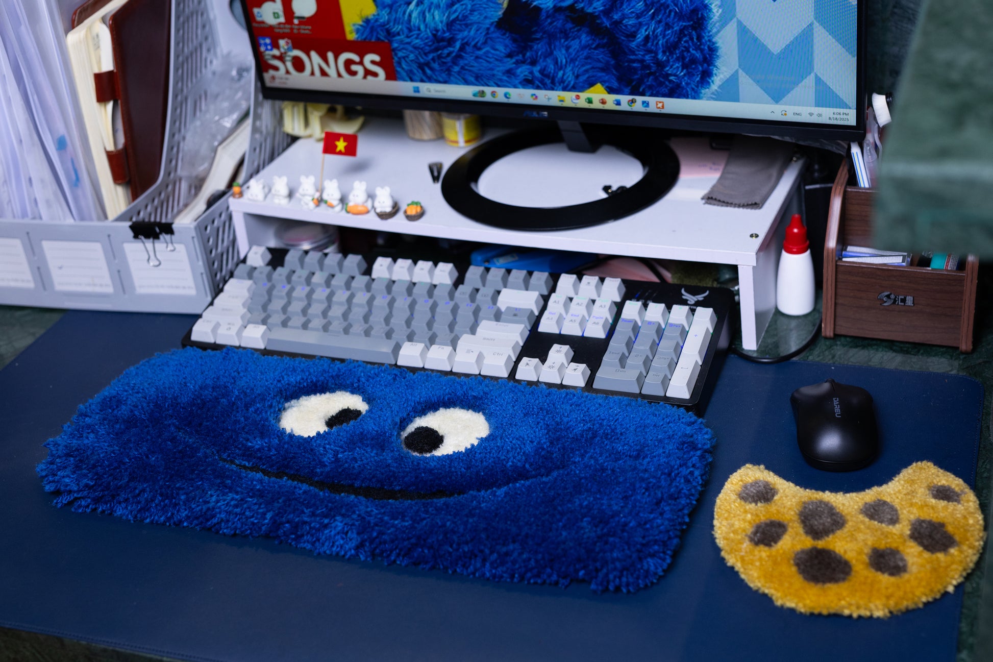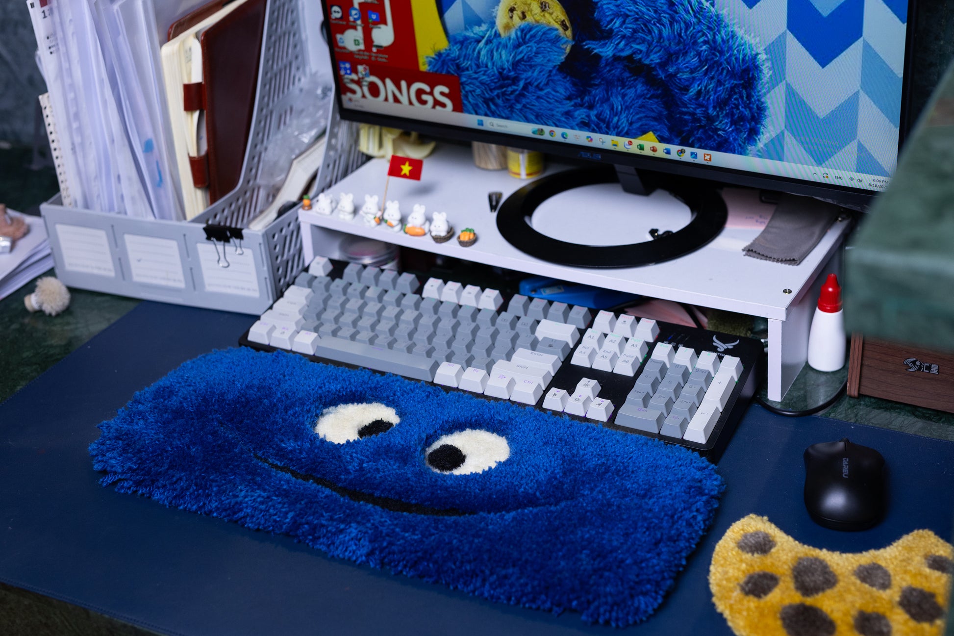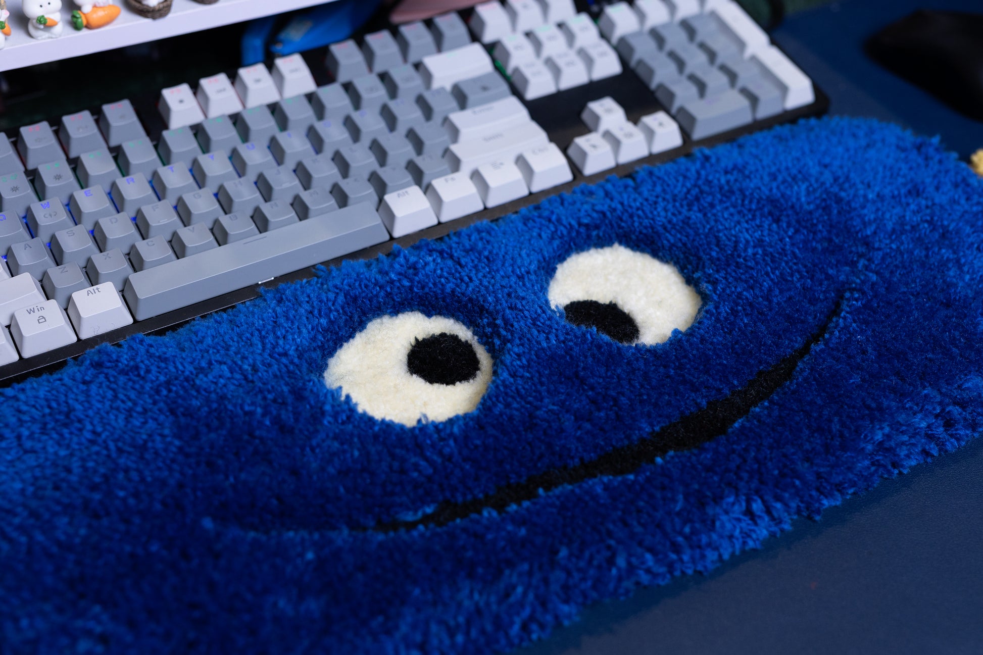 Cookie Monster Keyboard Rug – Handmade Tufted Desk Mat for Gamers & Blue Desk Decor