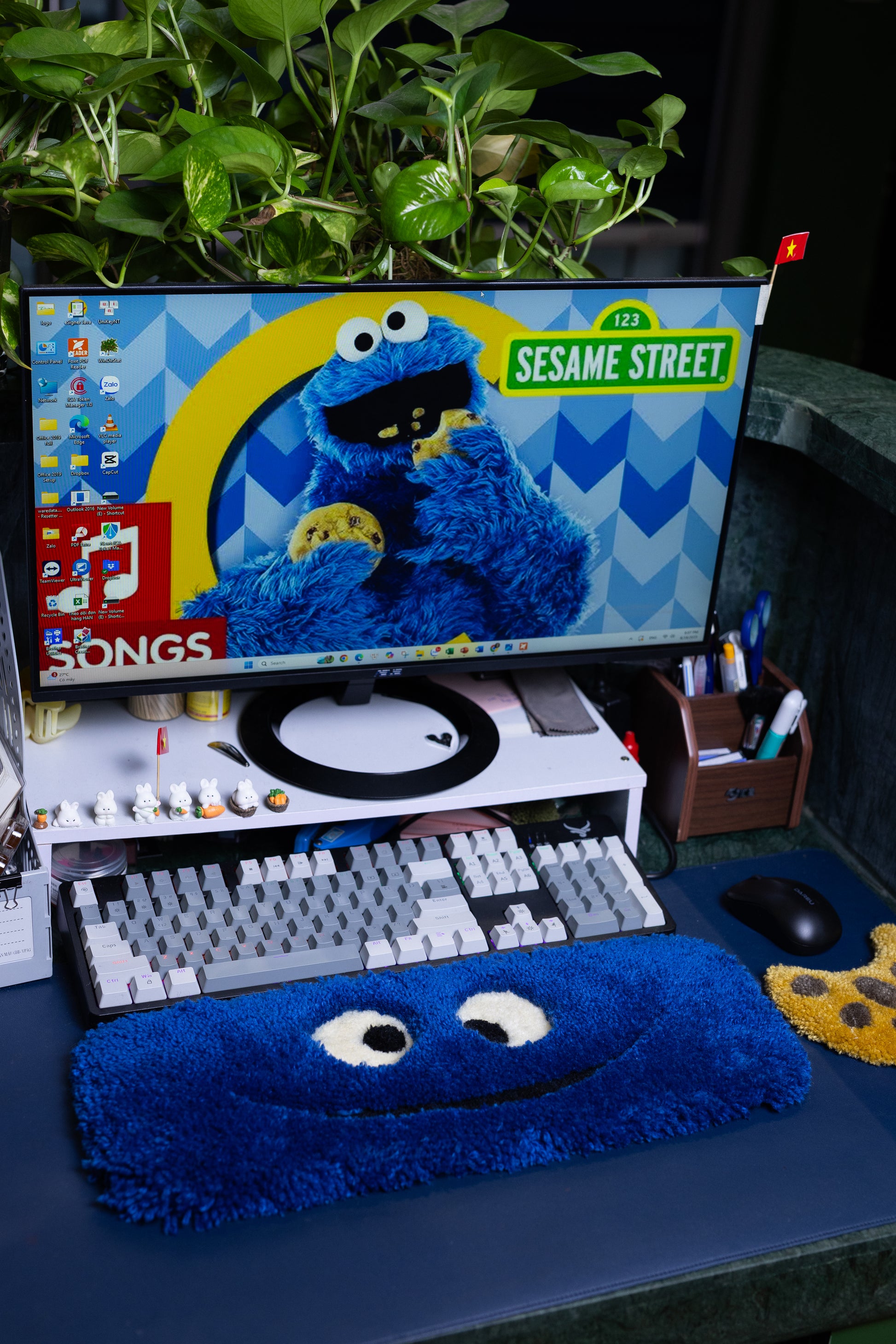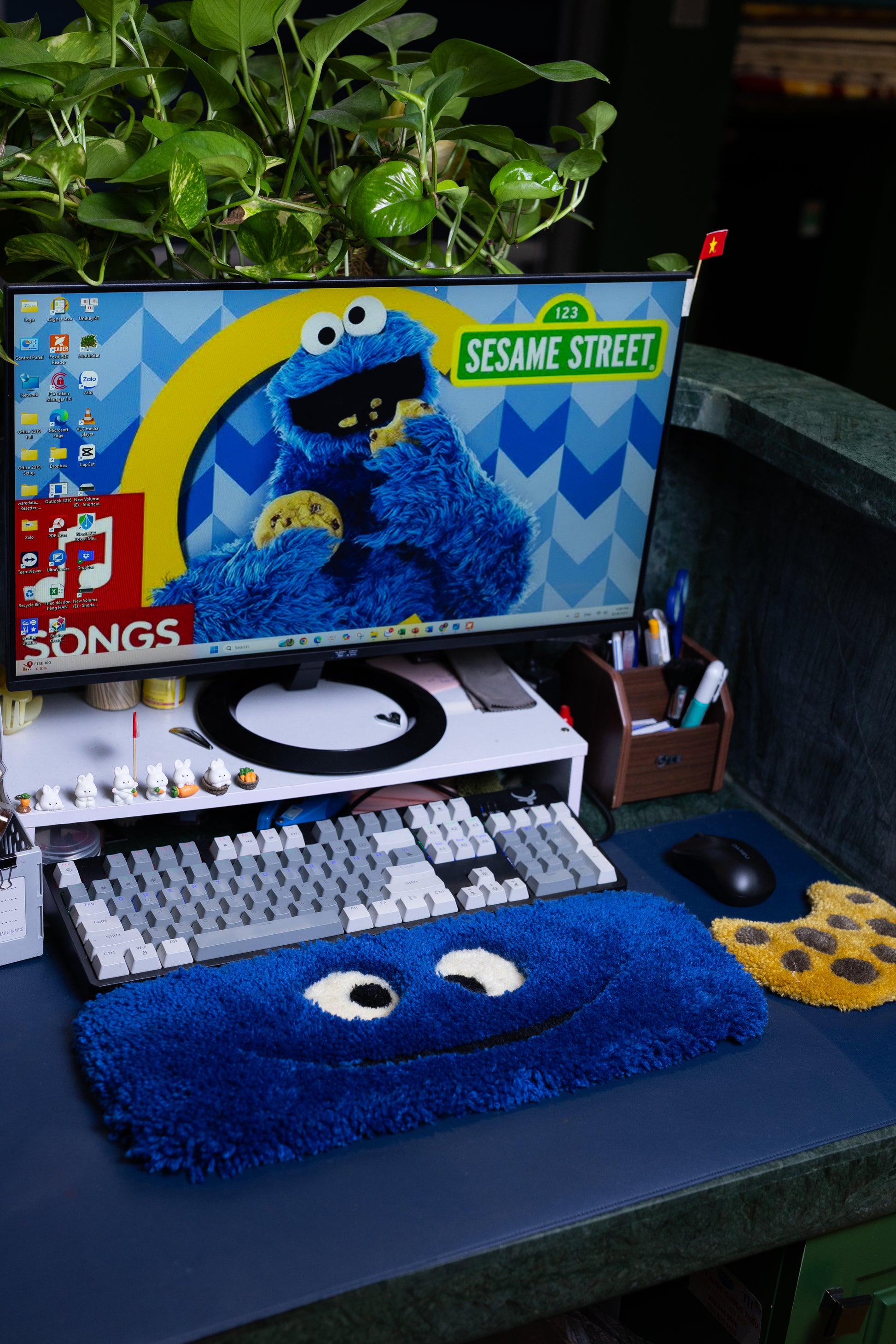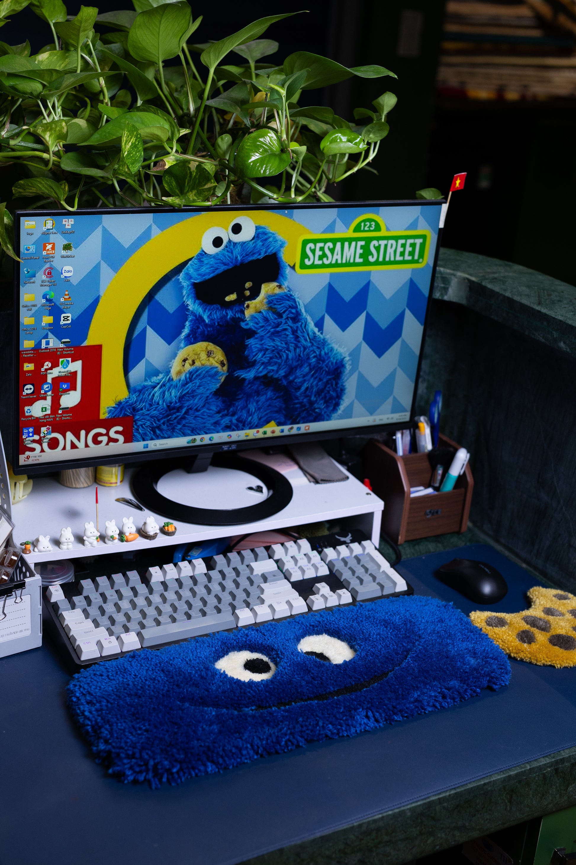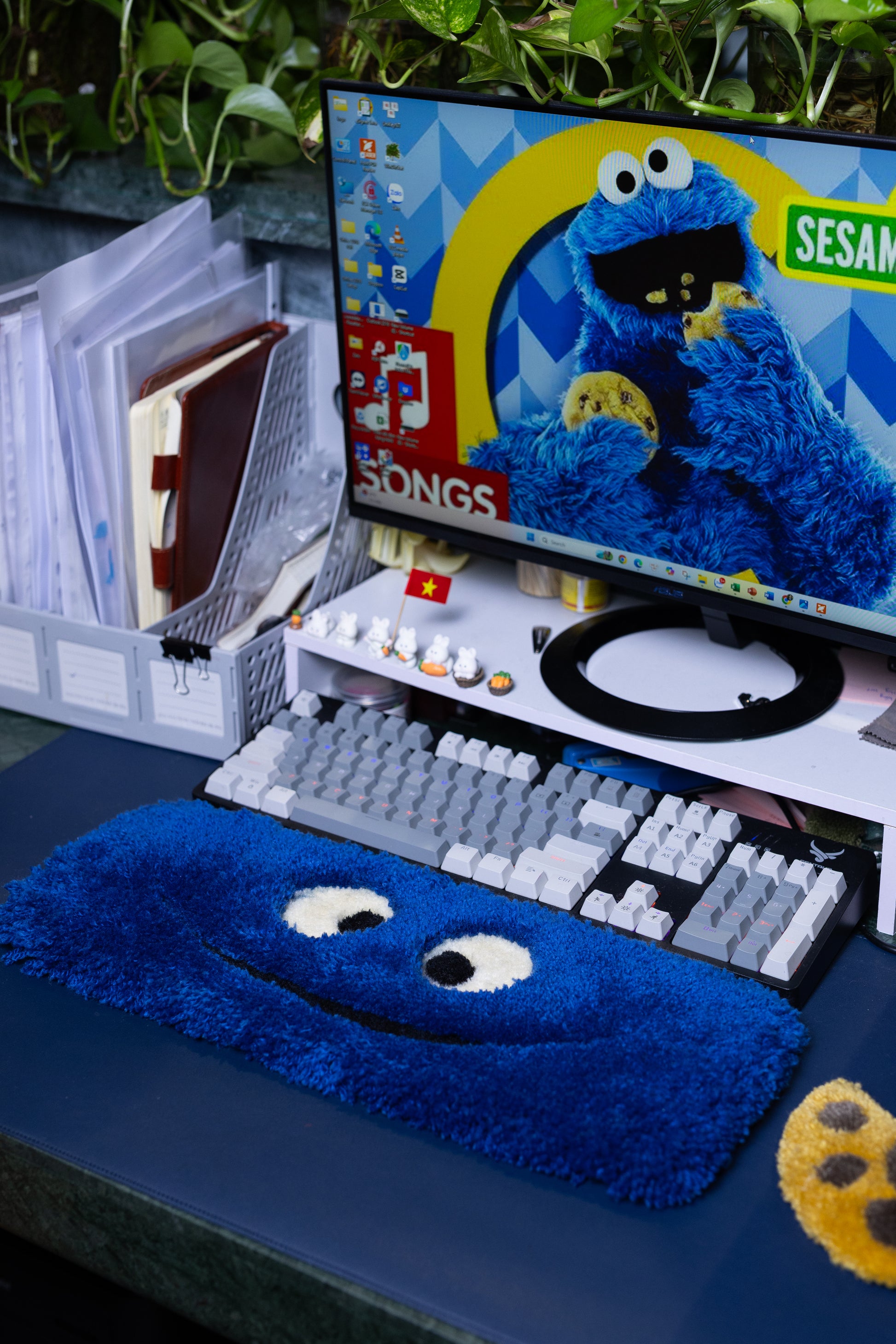 Cookie Monster Keyboard Rug – Handmade Tufted Desk Mat for Gamers & Blue Desk Decor