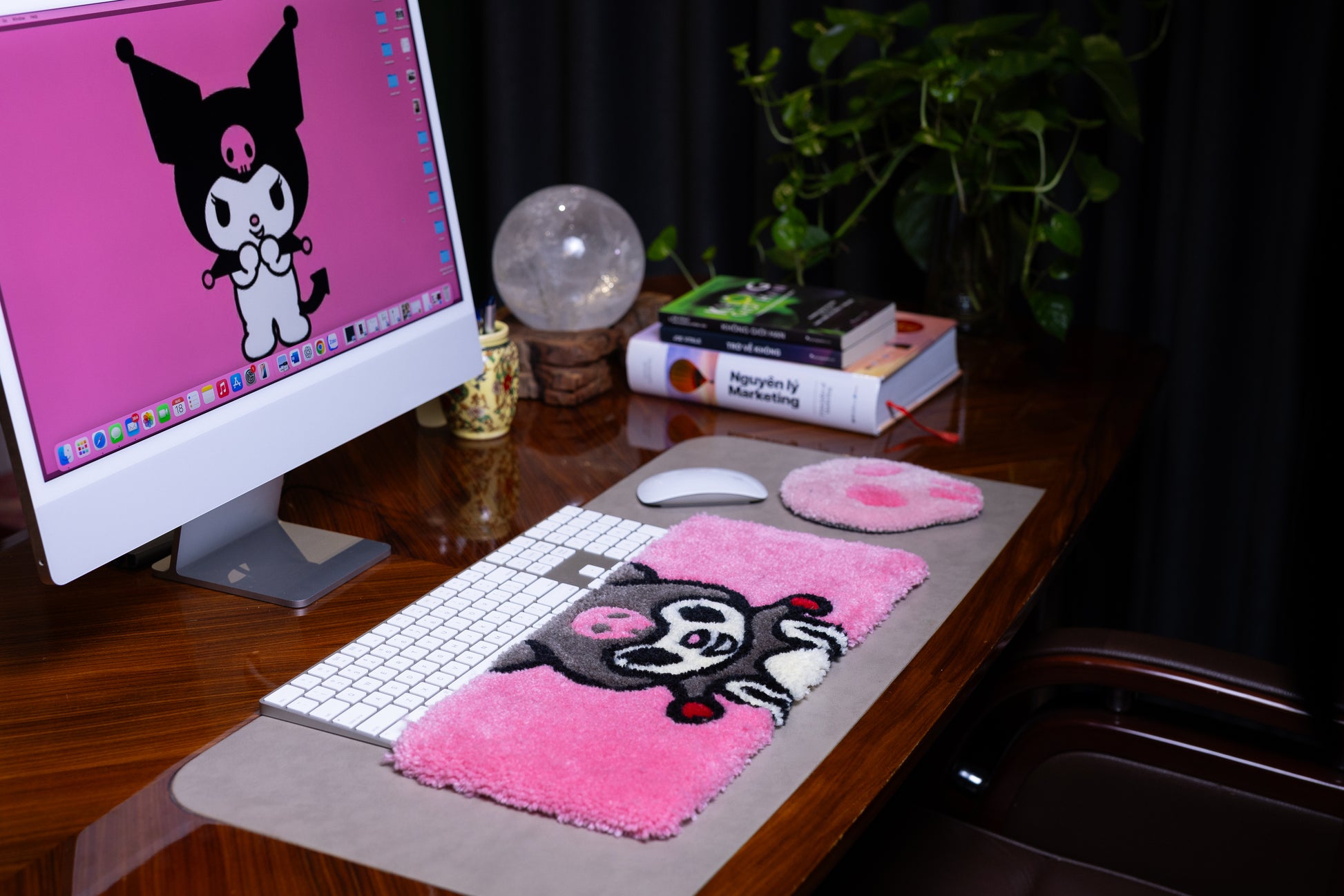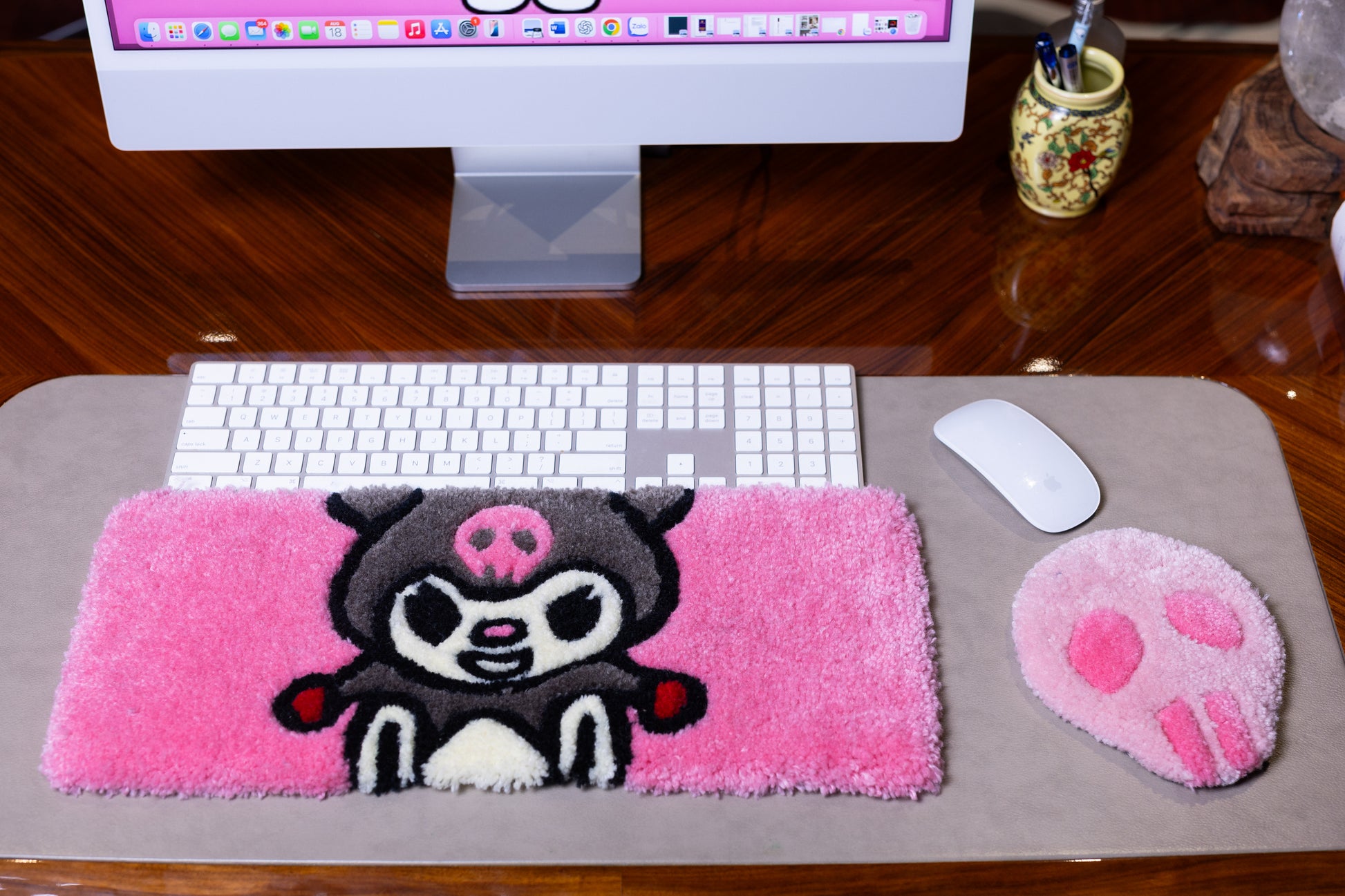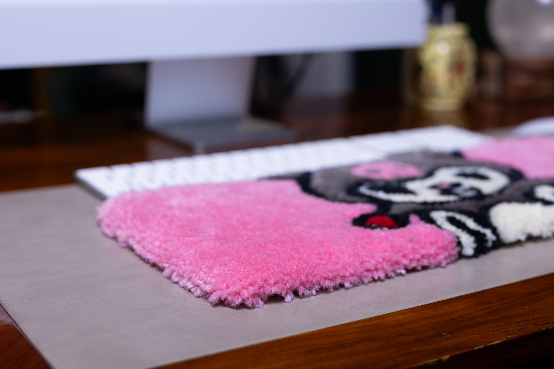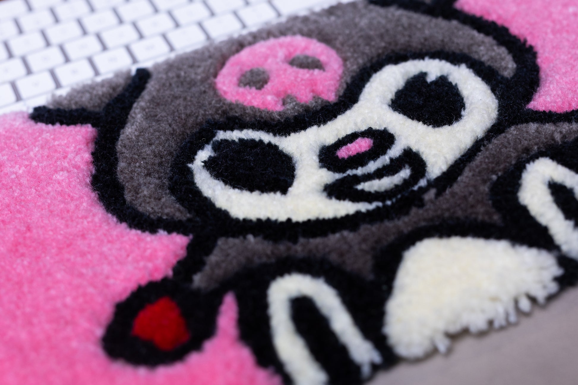 Kuromi Keyboard Rug – Handmade Tufted Pink Desk Mat for Kawaii & Anime Lovers