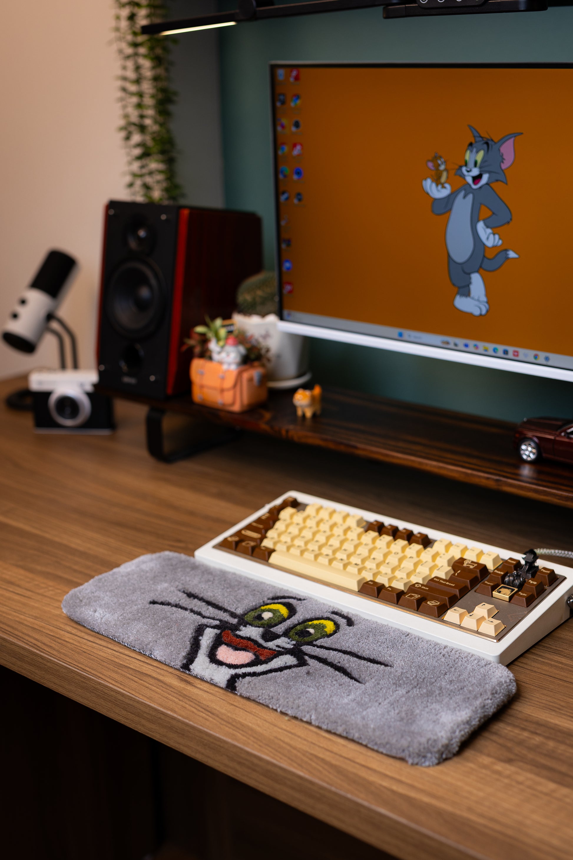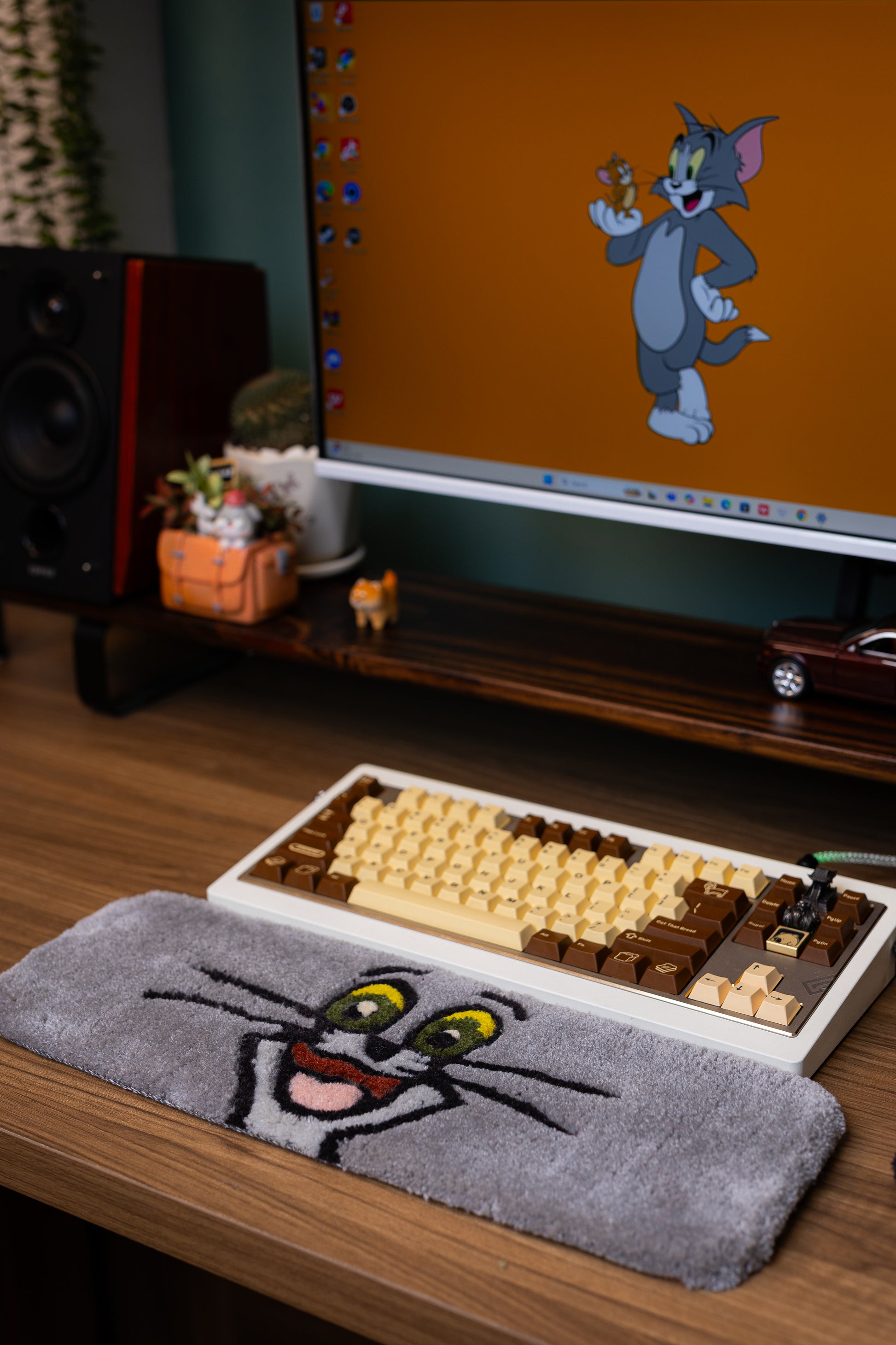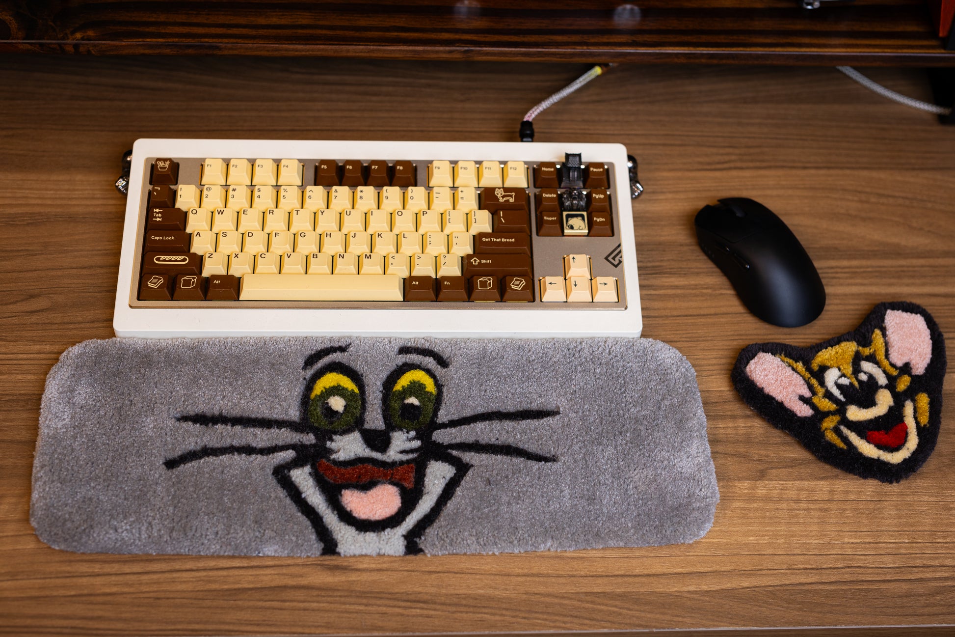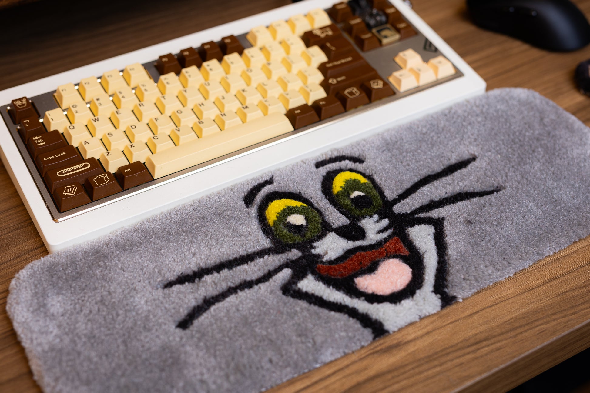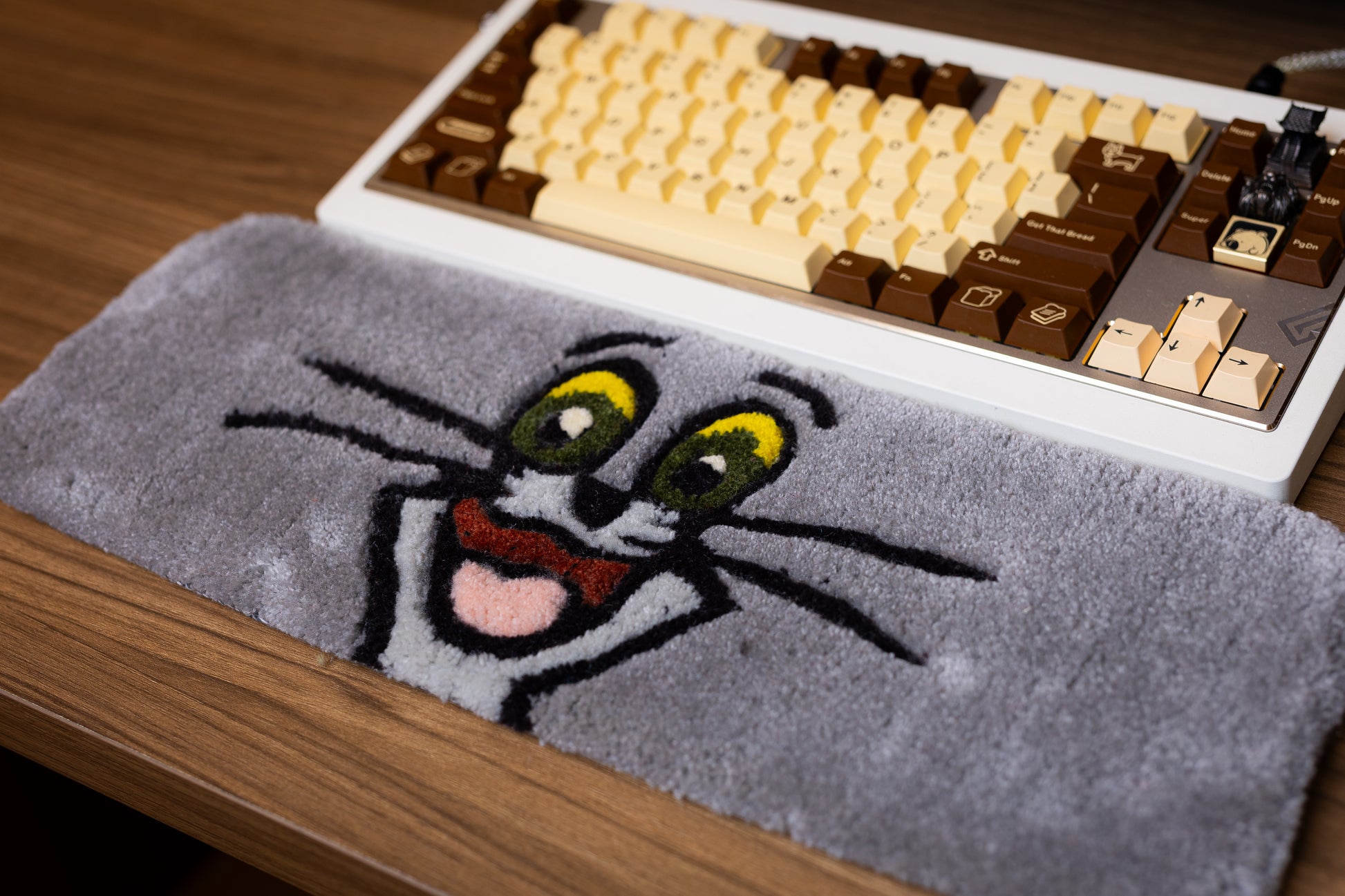 Add a touch of classic cartoon fun to your setup with this handmade Tom Cat Keyboard Rug and Wrist Support Pad!
