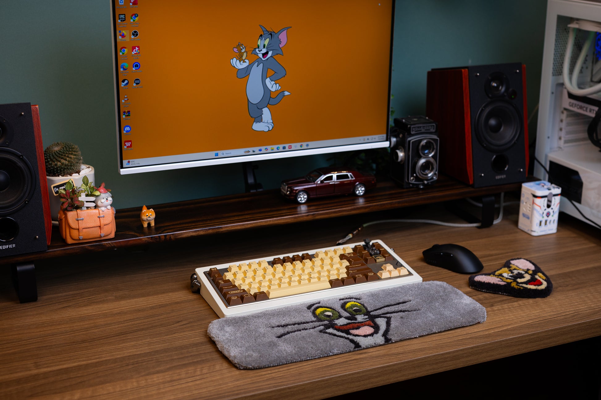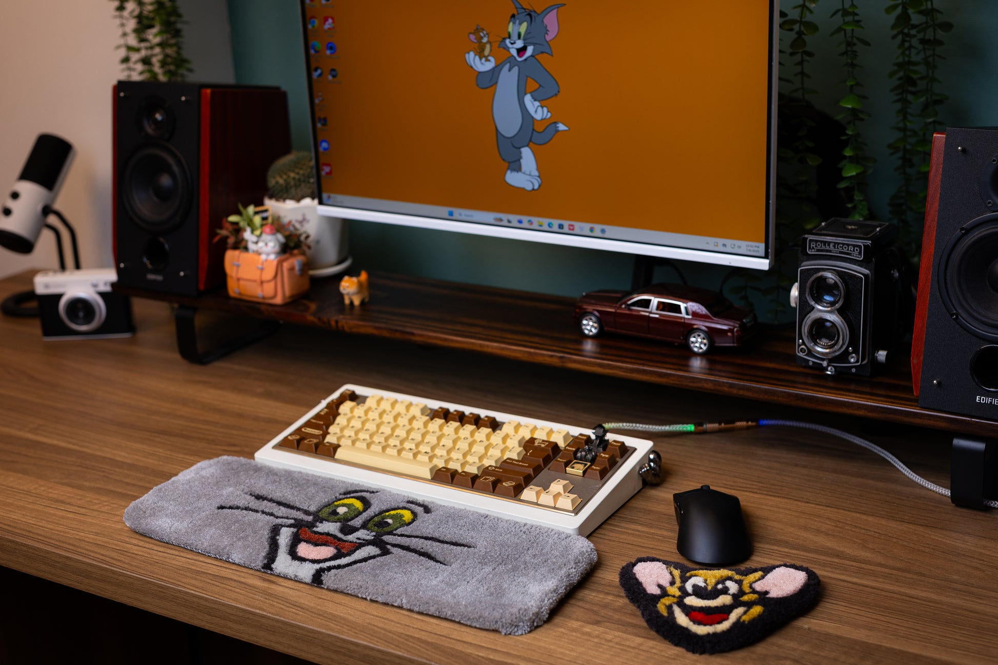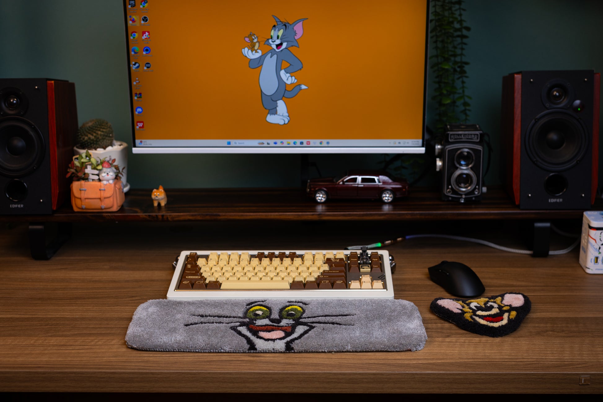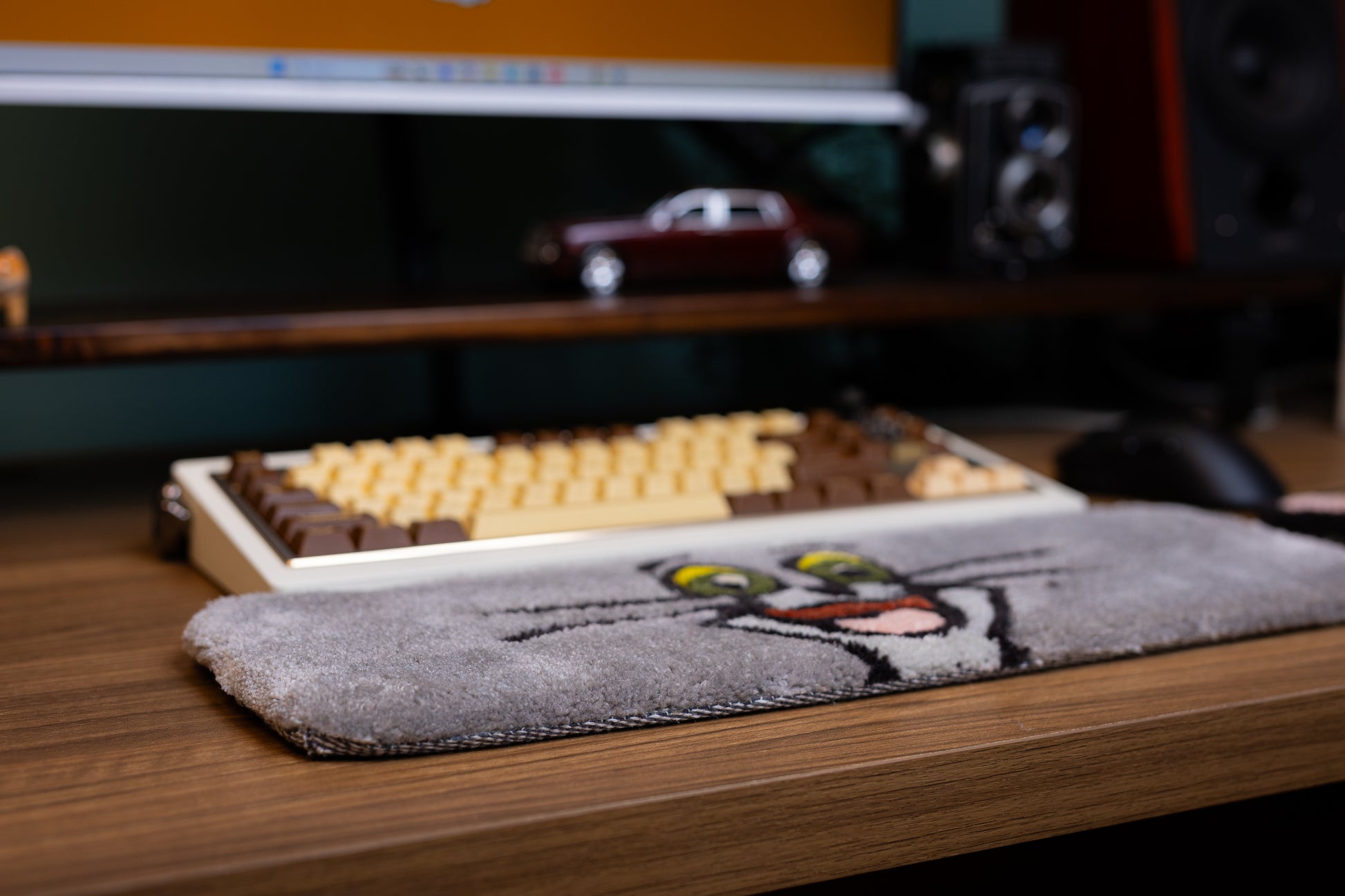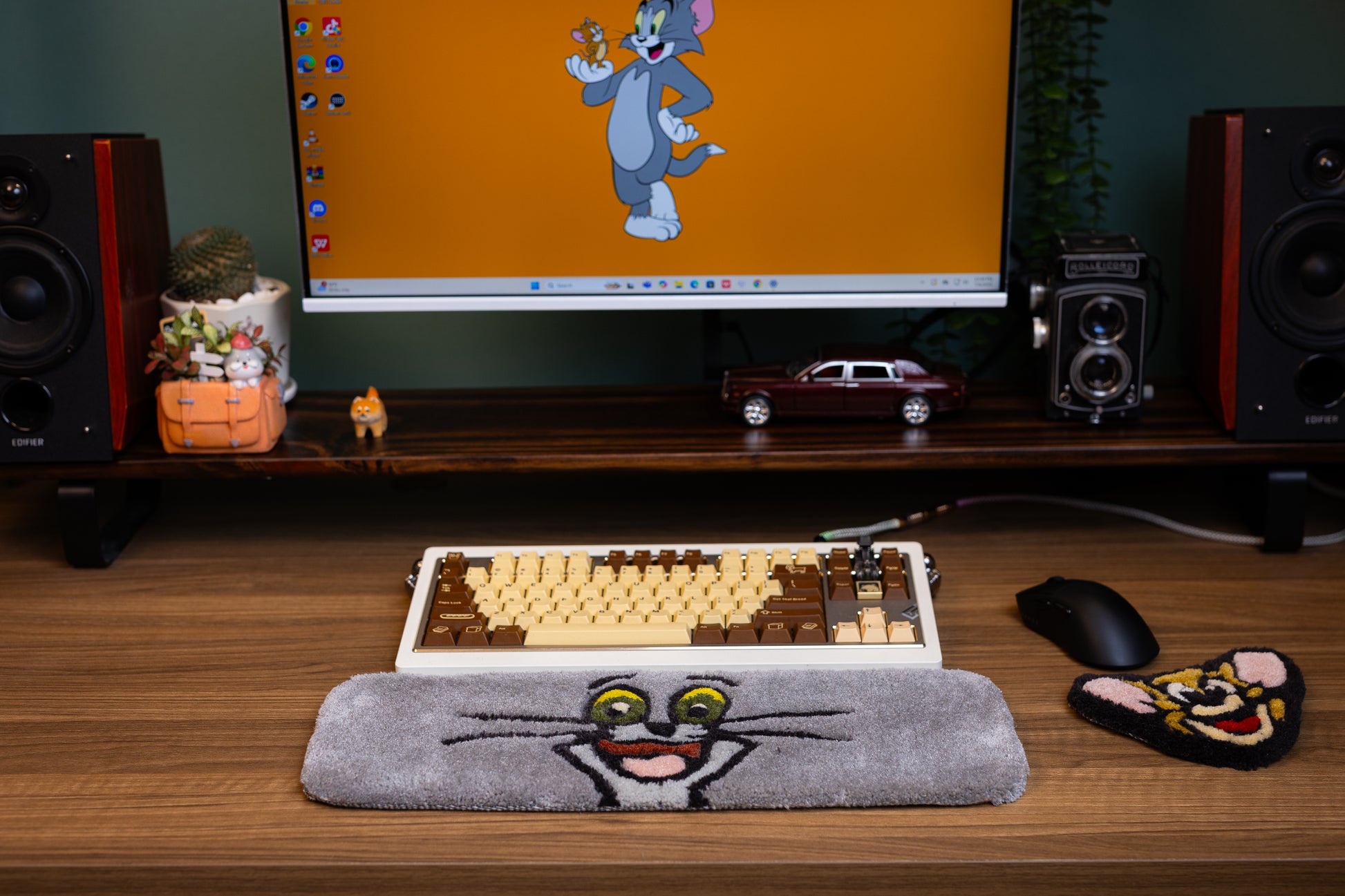 Add a touch of classic cartoon fun to your setup with this handmade Tom Cat Keyboard Rug and Wrist Support Pad!
