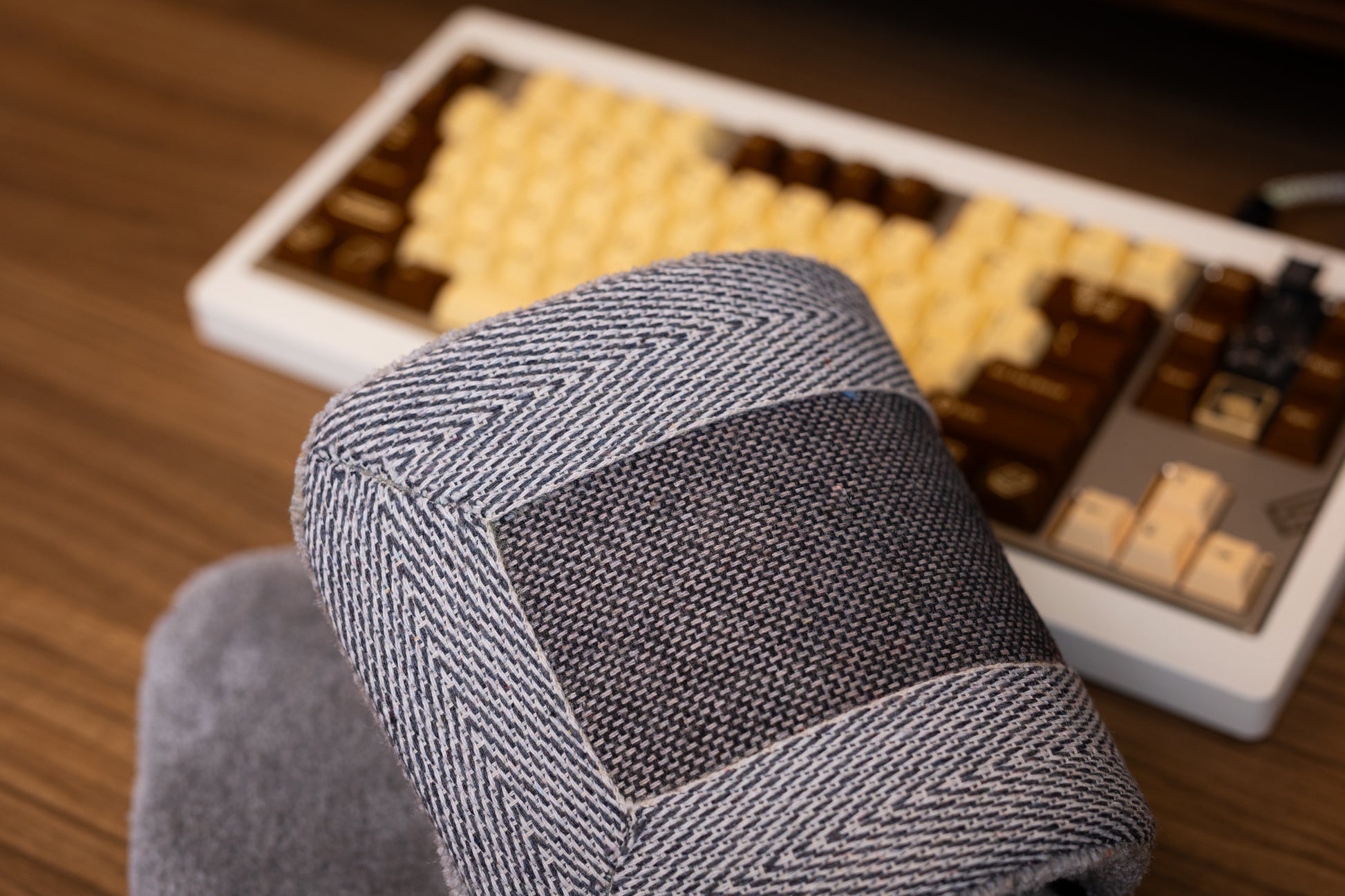 Tom Cat Keyboard Rug with Wrist Rest – Handmade Tufted Grey Desk Mat 45x15cm | Cartoon Gamer Gift